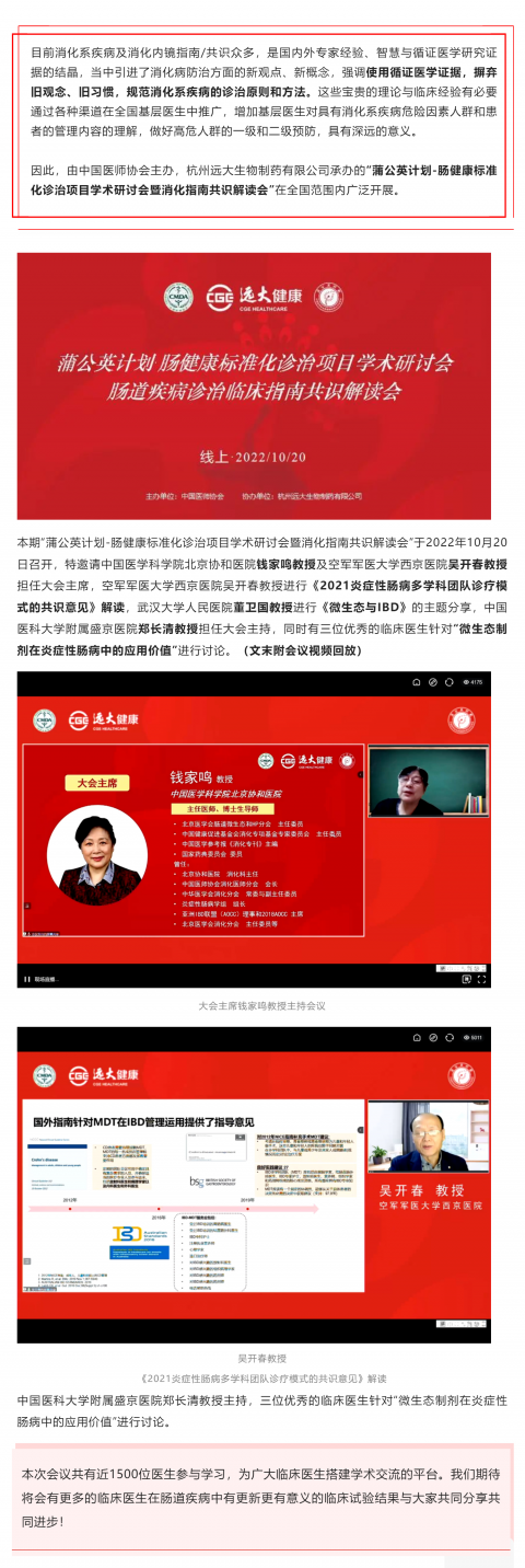 由中國(guó)醫(yī)師協(xié)會(huì)主辦,杭州遠(yuǎn)大生物制藥有限公司承辦的“蒲公英計(jì)劃-腸健康標(biāo)準(zhǔn)化診治項(xiàng)目學(xué)術(shù)研討會(huì)暨消化指南共識(shí)解讀會(huì)”在全國(guó)范圍內(nèi)廣泛開(kāi)展。